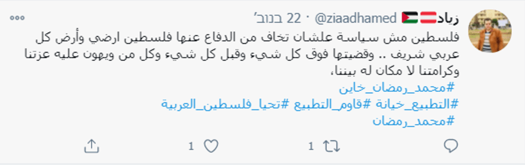 העיתונאי אחמד אל-קאעוד: "במשך 70 שנה ישראל נכשלה בנרמול היחסים עם העם המצרי, אולם כעת הציונות מנסה לכפות את הנרמול, בתמיכת האמירויות, באמצעות אומנים משועבדים לכסף חלשי אופי, כך התמונה של מוחמד רמדאן עם זמר ישראלי באמירויות." לדבריו, הנרמול הוא בגידה.