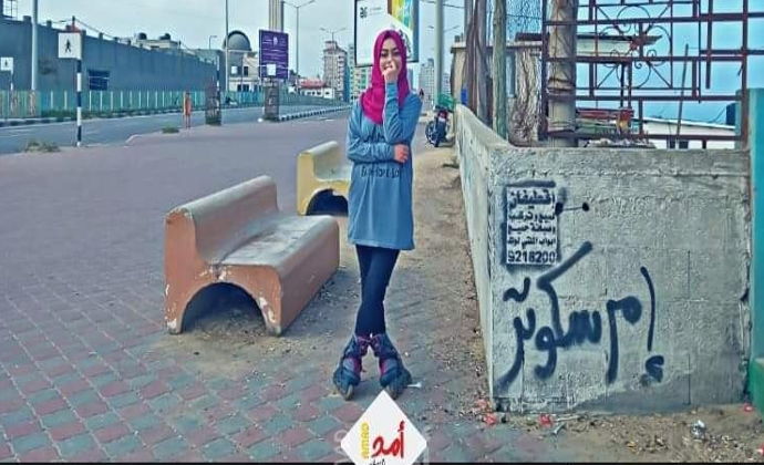 צאפינאז' אל-לוח דיווחה באתר "אמד" כי בחורה בת 20 מח'אן יונס – מרח כאמל חסונה -קראה תגר על המסורת והמנהגים של החברה הערבית בעזה תוך התעלמות מכל המסתייגים והחליטה לנסוע על גלגיליות.