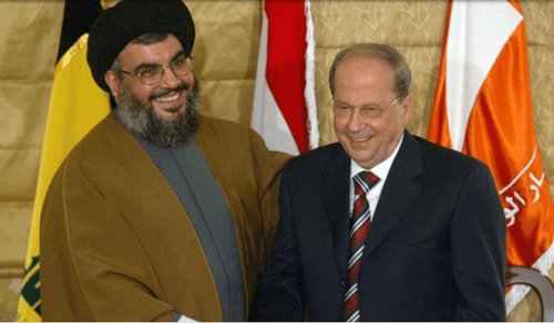 נשיא לבנון מישל עון ומזכ"ל חזבאללה חסן נסראללה[1]
