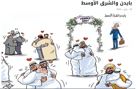 בעל טור ביומון הסעודי אל-שרק אלאוסט – עבד אל-רחמן אל-ראשד – כתב במאמרו: "אמנם רבים מהאישים המועמדים לכהן בממשל ביידן היו חברים בצוותים של הנשיא לשעבר ברק אובמה, אך אין הכרח שמדיניות ביידן תהיה בדיוק כמו זו של אובמה. הרי אובמה נכשל בשיווק מדיניותו ולא הצליח לכפות על מדינות המפרץ ומדינות ערביות נוספות וגם על ישראל לקבל את מדיניותו כלפי אירן… הצהרות הנשיא ביידן ואנשיו כשהיו באופוזיציה וכן במסע הבחירות עוררו דאגה, אך ההצהרות שלהם בימים האחרונים נותנות מקום לאופטימיות. שר ההגנה המיועד שיבח את חיסול קאסם סולימאני והצהרה זו היכתה את האיראנים בהלם. כך גם שר החוץ המיועד אנטוני בלינקן גינה את החות'ים והטיל עליהם את האחריות הגדולה למתרחש בתימן… ההתפתחות החדשה היא התחייבות הממשל החדש לשתף את מדינות המפרץ ואת ישראל בנוגע לכל מו"מ עם איראן בנושא הגרעין, בניגוד מוחלט למדיניות אובמה שהקפיד להדיר אותן וניהל את המו"מ בחשאי."[13]