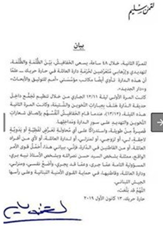 מחאה: מי רצח את לוקמאן סלים? מי פוצץ את נמל ביירות? מי רצח את רפיק אל-חרירי, את ג'ובראן טויני ואת סמיר קציר? מפלגת הטרור, מפלגת השטן?[53]
