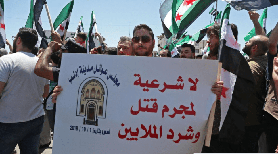הפגנה בסוריה: "אין לגיטימציה לפושע שרצח וגירש מיליונים"[18]