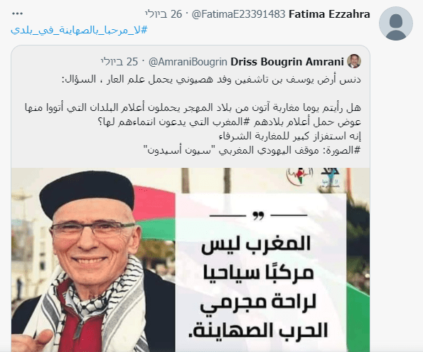 אחת התגובות לכתבה: "העם המרוקני מכובד ויש בו גיבורים. ארורים המנרמלים הבוגדים. הסתלק כובש ציוני כופר אל מזבלת אירופה מהמקום שהגעת ממנו. יבואו ימים ותראו את הגיהינום."